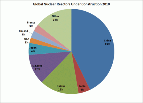 As you can see, most of the plants under construction are in developing countries. China is in the process of constructing 23 reactors with a total capacity of nearly 26,000 MW. Only looking at plants where construction is underway, China is roughly tripling the size of its nuclear fleet. Russia and India are also building their nuclear power capabilities.