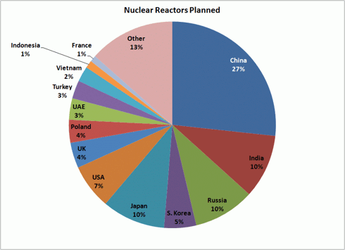 Globally, there are 152 planned reactors with total capacity of 167,401 MW--roughly equivalent to the capacity of existing reactors. Emerging economies also account for many of these planned reactors. In fact, China, India and Russia alone account for about half the world’s planned nuclear facilities.